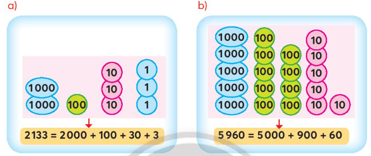 a)    2 133 = 2 000 + 100 + 30 + 3. Vậy câu a đúng.