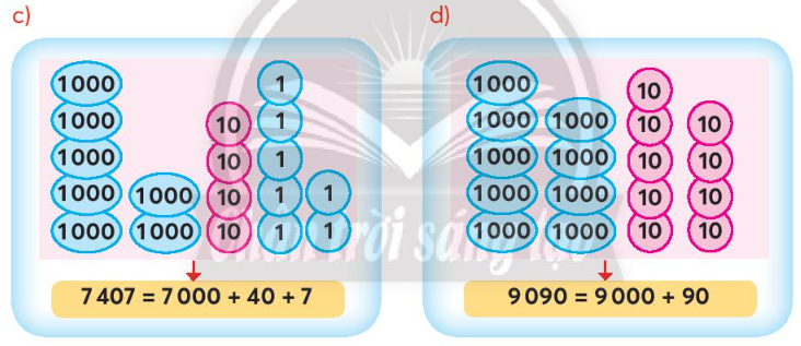 d)    9 090 = 9 000 + 90. Vậy câu d đúng.