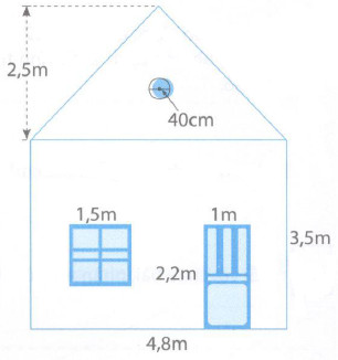 Người ta muốn sơn một bức tường có kích thước như hình vẽ bên. Tính diện tích cần sơn (không sơn cửa, cửa sổ và ô thoáng)