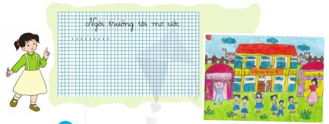 Câu 1: Hãy viết 4 – 5 câu về một ngôi trường em mơ ước. Vẽ tranh minh hoạ ngôi trường đó.