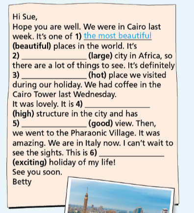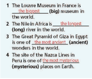 ( Hoàn thành văn bản với các tính từ trong ngoặc ở dạng so sánh nhất.)