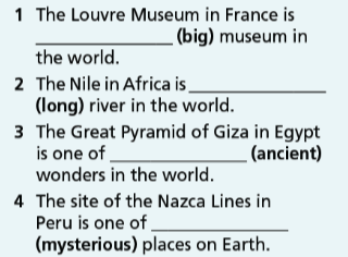 ( Hoàn thành câu với các tính từ trong ngoặc ở dạng so sánh nhất.)