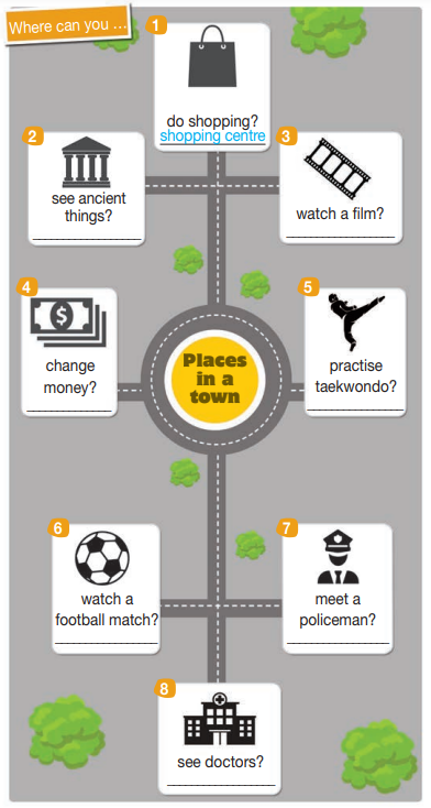• museum        • shopping centre        • bank           • stadium         • sports centre             • cinema