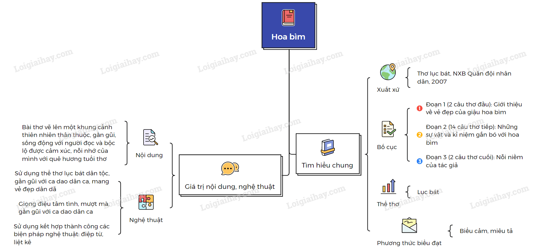 Sơ đồ tư duy bài thơ “Hoa bìm”: