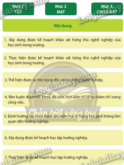 Lựa chọn mức độ đánh giá phù hợp cho mỗi nội dung.