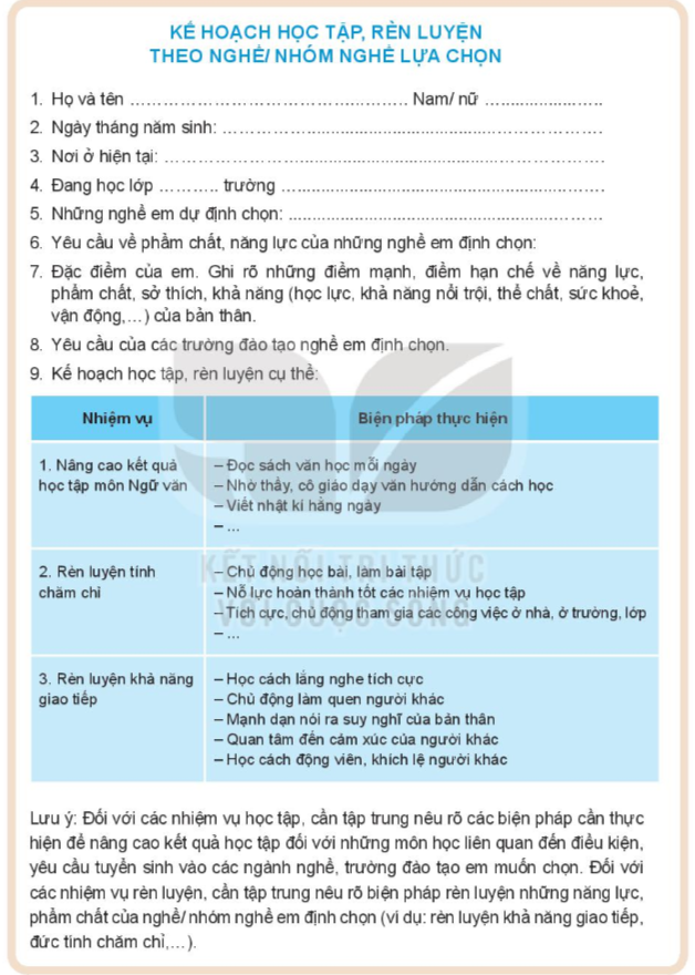 Em hãy lập kế hoạch học tập, rèn luyện theo những yêu cầu của nghề, nhóm nghề em định lựa chọn.