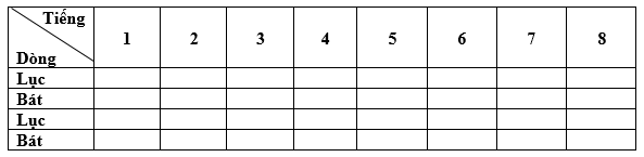 Dựa vào hiểu biết về thể thơ lục bát, em hãy chỉ ra sự hiệp vần và sự phối hợp thanh điệu của bài thơ trên bằng cách điền vào bảng sau: