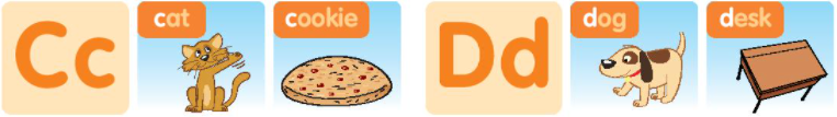 2. Point and say the words that begin with c and d.