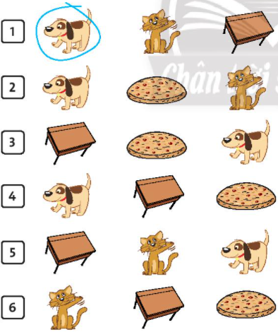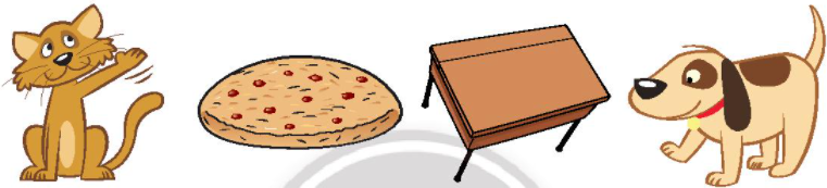 cat (con mèo)cookie (bánh quy) desk (bàn học) dog (con chó)