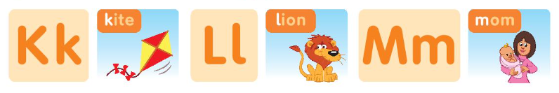 (Chỉ vào và đọc những từ bắt đầu bằng chữ cái k, l và m.)