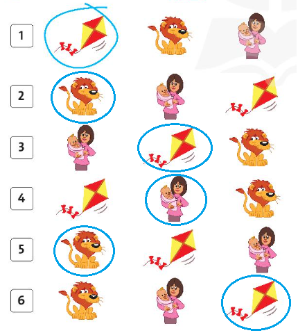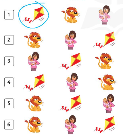 1. Listen and point. Repeat. 2. Point and say the words that begin with k, l and m. 3. Listen and circle.