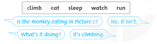 – Is the monkey eating in Picture C? (Có phải con khỉ trong tranh C đang ăn không?)