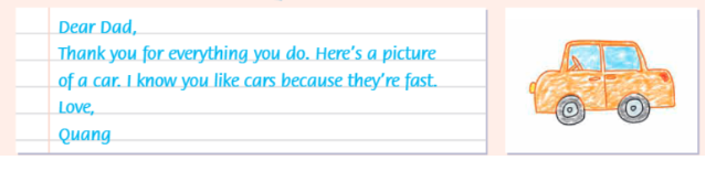 (Vẽ và viết thiệp cảm ơn cho một thành viên trong gia đình. Nhìn vào ví dụ để giúp bạn.)