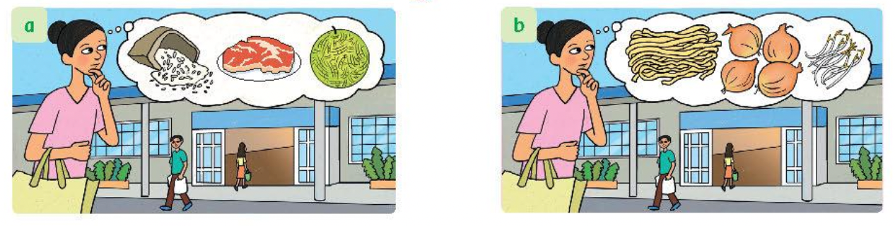 Listen and write a or b. Look at the pictures. Ask and answer. Describe what you like eating for lunch or dinner. Write a recipe. Use the example to help you.