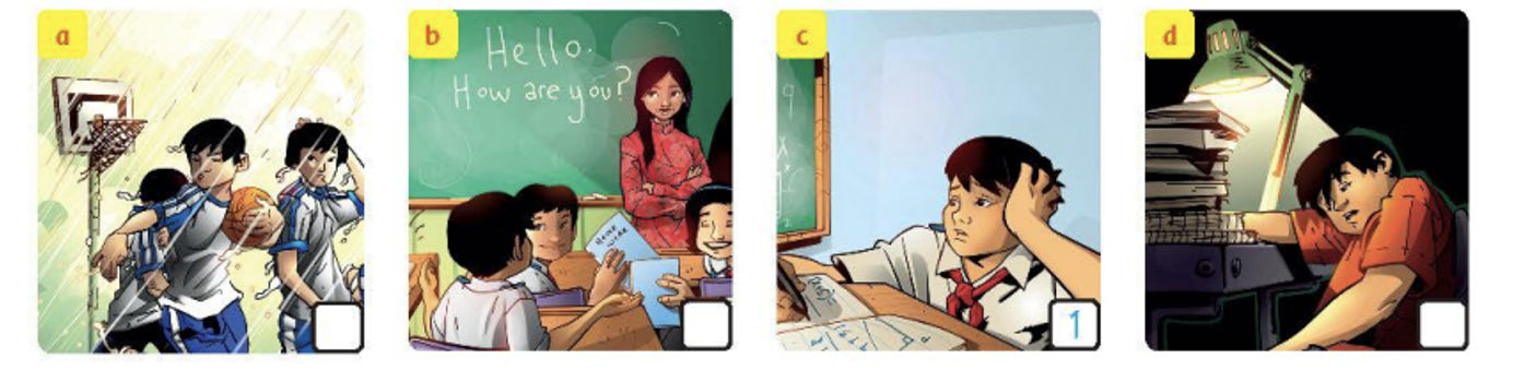 (Cậu ấy có tiết học Toán. Cậu ấy không biết câu trả lời.)