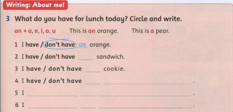 And Let’s see. I don’t have banana. But I have a sandwich and an orange.