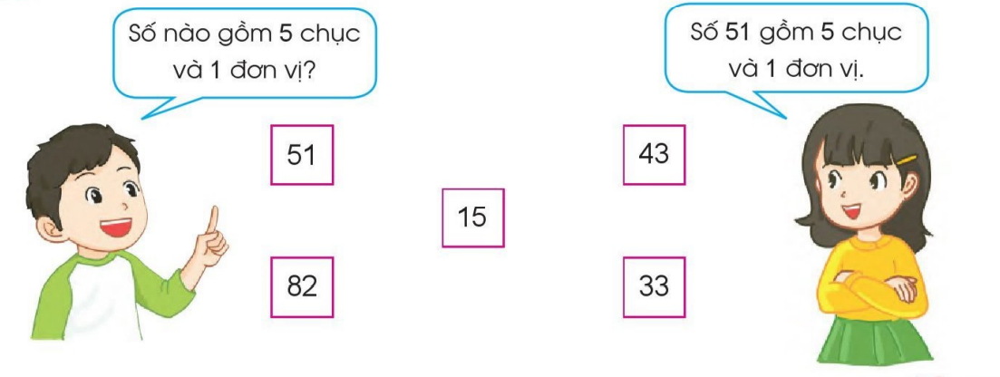 – Số gồm 1 chục và 5 đơn vị là 15.