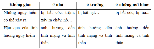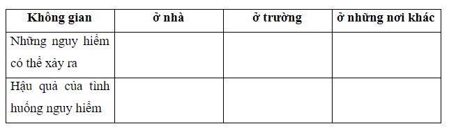 Nêu các tình huống nguy hiểm từ con người và hậu quả có thể xảy ra theo bảng dưới đây