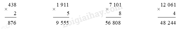 – Đặt tính: Viết phép tính nhân sao cho thừa số thứ hai thẳng hàng với chữ số hàng đơn vị của thừa số thứ nhất.