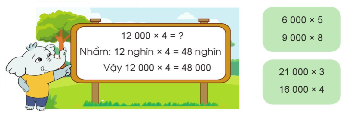 Nhân chữ số hàng nghìn với thừa số thứ hai rồi viết thêm vào tận cùng kết quả ba chữ số 0.