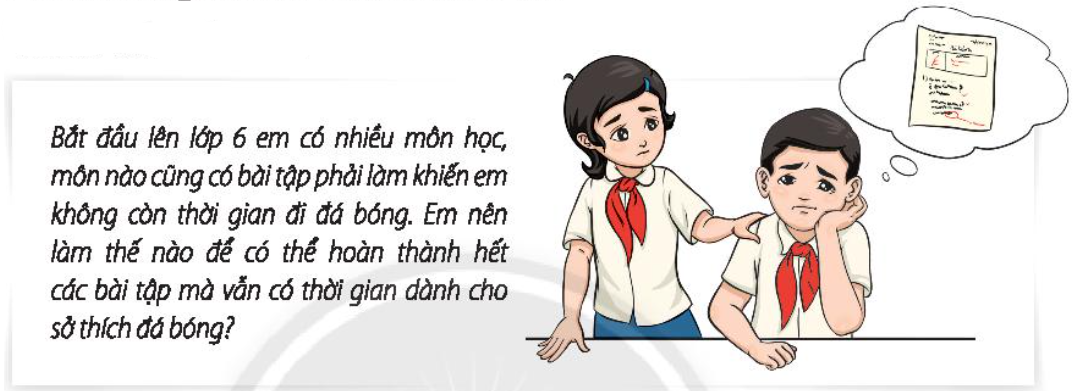 Em có thể chia thời gian học tập để hoàn thành sớm hơn. Ví dụ như em chia thời gian buổi sáng dậy sớm hơn để hoàn thành bài tập, buổi chiều có thể đi đá bóng với bạn bè.