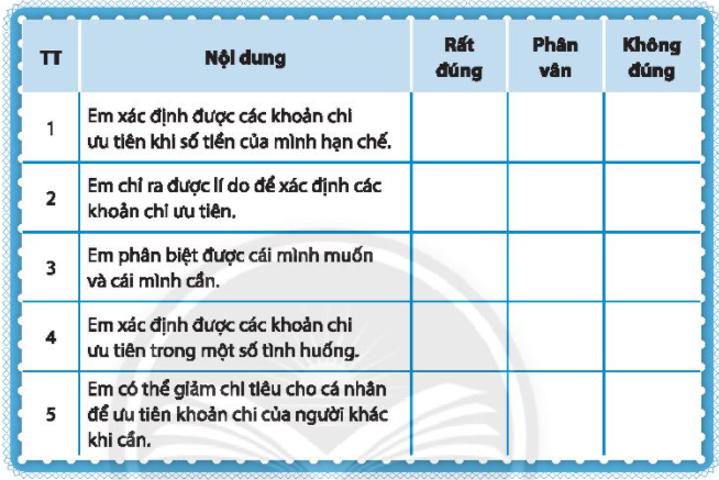 Em xác định được các khoản chi ưu tiên khi số tiền của mình hạn chế.