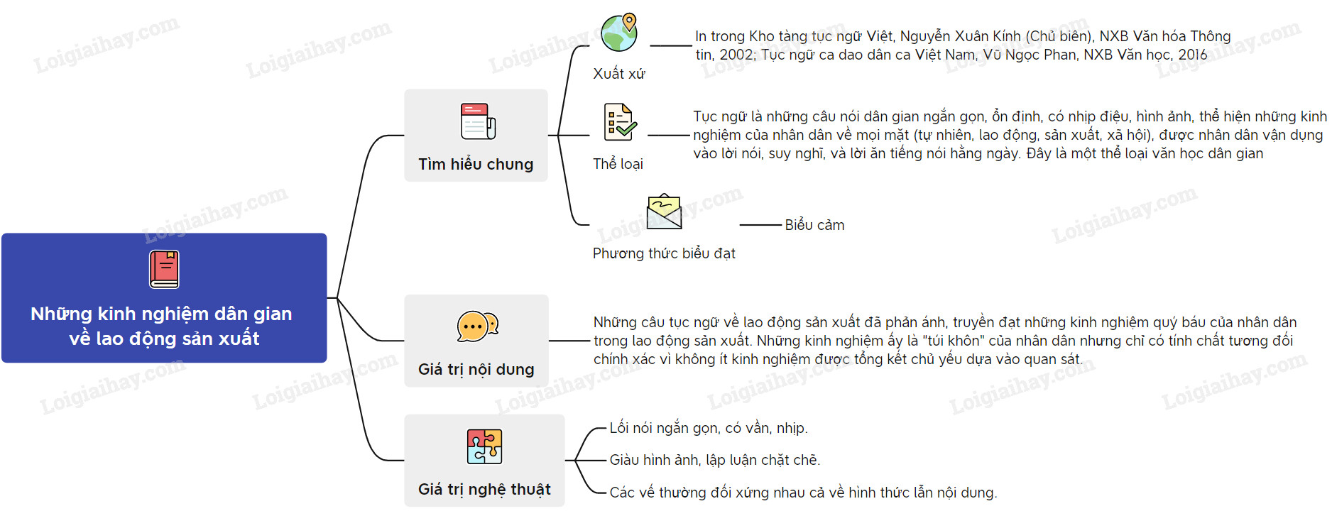 Sơ đồ tư duy văn bản Những kinh nghiệm dân gian về lao động sản xuất: