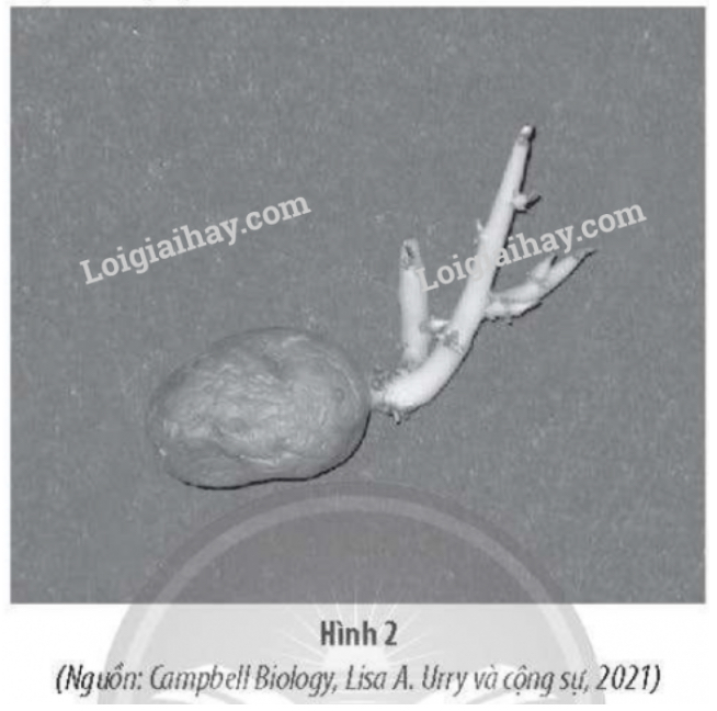 Hình 2 mô tả hiện tượng xảy ra ở củ khoai tây sau khi bị “bỏ quên” ở nơi không có ánh sáng lâu ngày.