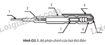 Hãy nêu tên và chức năng các bộ phận chính của bút thử điện như Hình O3.1.