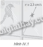 Một con nhện có khối lượng 0,42 g bò trên bề mặt kính cửa sổ một ngôi nhà với tốc độ không đối 2,3 cm/s theo hướng hợp với phương thẳng đứng một góc như Hình V.1. Lấy gia tốc trọng trường g = 9,8 m/s2. Tính công suất của con nhện.