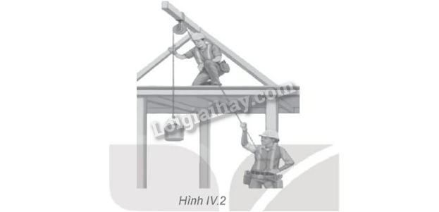 Trên công trường xây dựng, người công nhân sử dụng ròng rọc để đưa vật liệu lên cao (Hình IV.2). Do ảnh hưởng của thời tiết nên hệ thống ròng rọc và dây nối bị bẩn và gỉ sét. Người công nhân phải dùng lực có độ lớn 90 N để nâng vật có trọng lượng 70 N lên độ cao 8 m. Tính hiệu suất của ròng rọc.