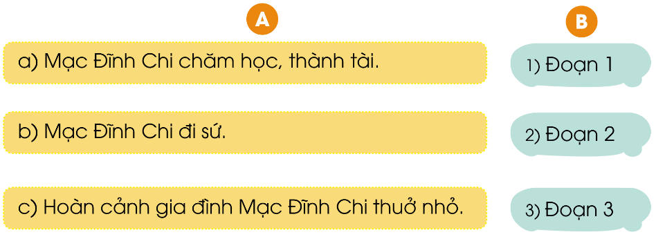 Ghép ý ở bên A phù hợp với mỗi đoạn ở bên B: