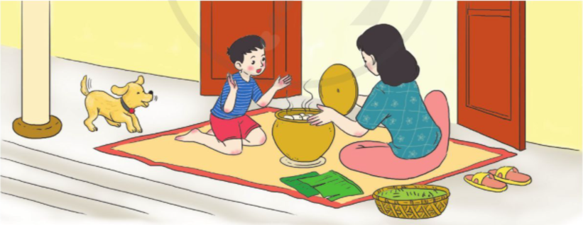 Ngủ một giấc dậy, tôi đã thấy dì mang chõ bánh lên. Vung vừa mở ra, hơi nóng bốc nghi ngút. Những cái bánh màu rêu xanh lấp ló trong áo xôi nếp trắng được đặt vào những miếng lá chuối hơ qua lửa thật mềm, trông đẹp như những bông hoa. Nhân bánh là một viên đậu xanh giã nhỏ vàng ươm, xen một thỏi mỡ xinh xắn, pha hạt tiêu. Cắn một miếng bánh thì như thấy cả hương đồng, cỏ nội gói vào trong đó.