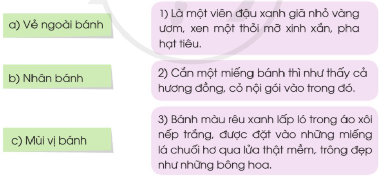 Câu 2: Tác giả tả chiếc bánh khúc như thế nào? Nối đúng:
