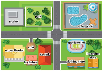 sports center            make vlogs             ice rink            market            bake cakes            building models            fair            water park