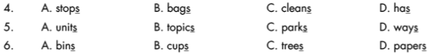 Phần được gạch chân ở phương án D được phát âm /z/, các phương án còn lại phát âm /s/.