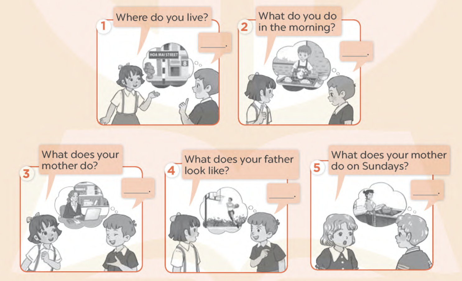 5. Mẹ bạn làm gì vào ngày chủ nhật?