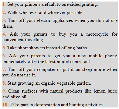 5. Work in pairs. Discuss what you can do to change your lifestyles and go green.