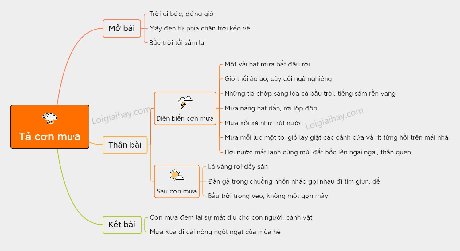 Sơ đồ tư duy dàn ý bài văn tả cảnh cơn mưa