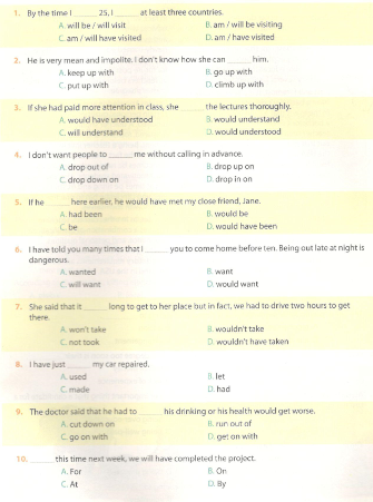 Task 4. Choose the best answer to complete each sentence by circling A, B, C or D. (Chọn câu trả lời đúng nhất để hoàn thành mỗi câu bằng cách khoanh tròn A, B, C hoặc D.)