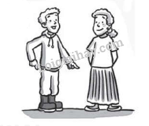 C. The boy’s wearing boots. The girl’s wearing a skirt.