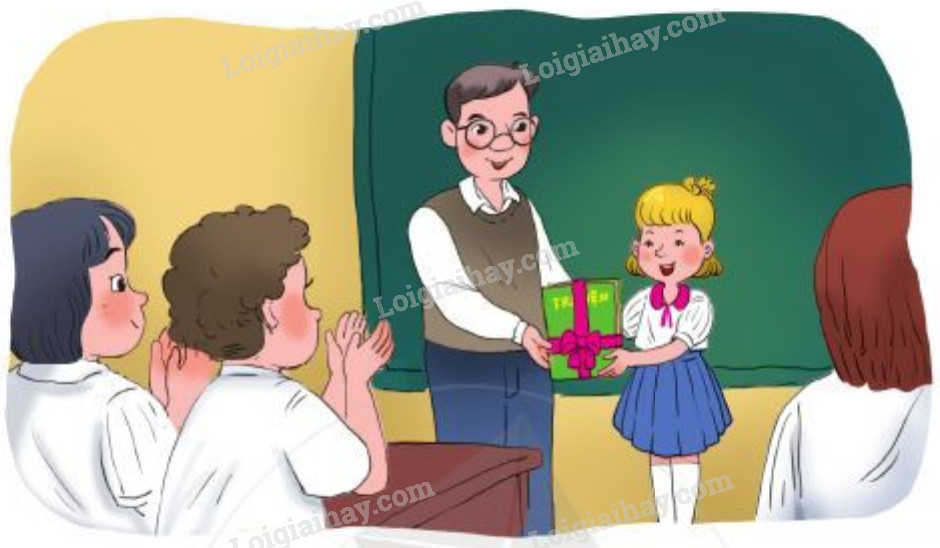 Cả lớp chúc mừng Ma-ri-ca bằng một tràng pháo tay. Rồi thầy thay mặt các bạn trong lớp tặng Ma-ri-ca một quyển truyện cổ tích.