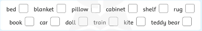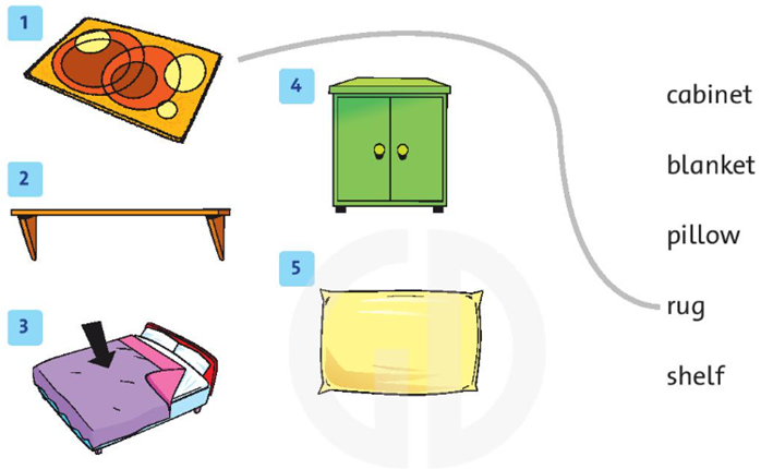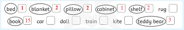 3. Circle the things in your bedroom. Write how many in the box.
