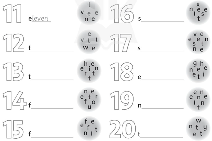 2. Look at the number and the letters. Write the word.