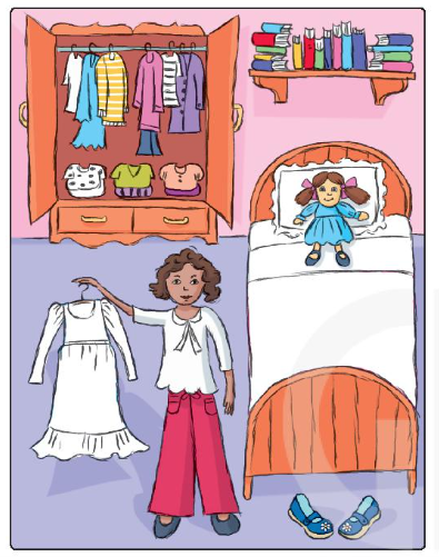 4. What’s in her cabinet? (Có cái gì trong tủ của cô ấy?)