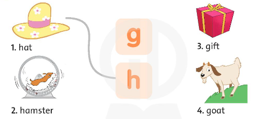 1. Help the hamster find the hat. Connect the correct letters.