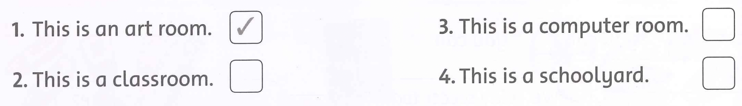 1. Look and read. Write a check (√) or a cross (X) in the box.