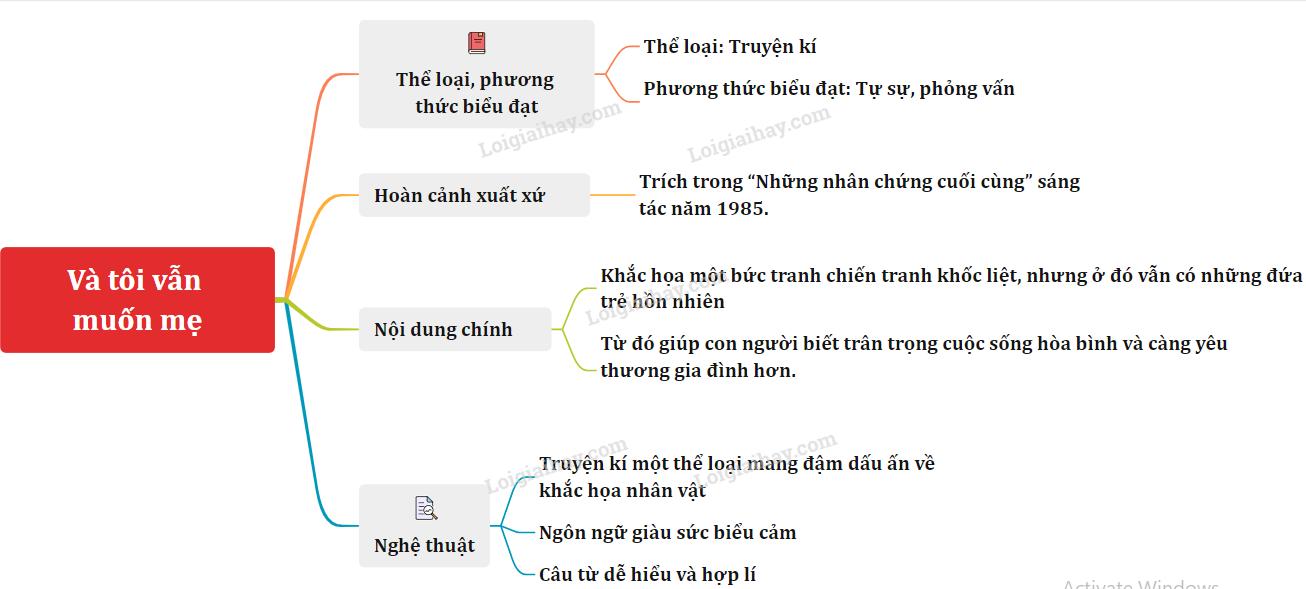 Sơ đồ tư duy Tác phẩm Và tôi vẫn muốn mẹ