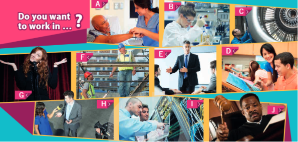 THINK! What job do you want to do when you leave school? What qualifications are necessary for this job? 1. Complete the phrases with the words in the box. Then listen and check. 2. Match the words in the box with photos A-J. Listen and check. Which careers would you like to do a course in? Rate them from 1 to 10 (1 – like the least, 10 – like the most).