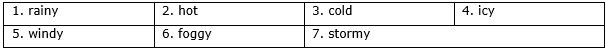 sunny cold foggy windy icy snowy hot rainy cloudy stormy